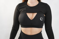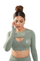 3. Round neck crop top has a thumbhole design to prevent sleeves from rolling up during activities.